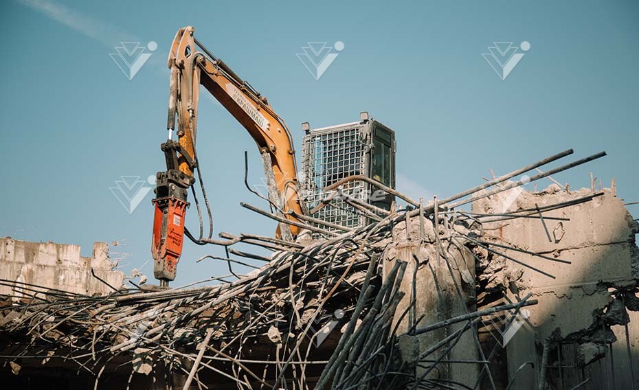 Гидрорыхлитель позволяет оператору работать на излом, чем облегчает и ускоряет процесс демонтажа, особенно для новичков. Обычный гидромолот так использовать нельзя – может лопнуть пика, а сам гидромолот может быть снят с гарантии.