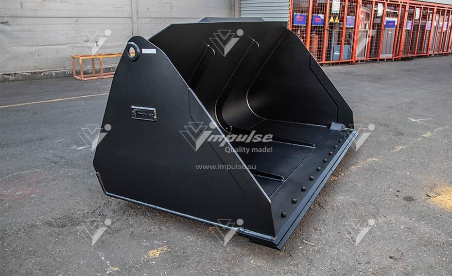 Ковш, предназначенный для телескопических погрузчиков, рассчитан на работу с материалами плотностью до 1100 кг на кубический метр. Он эффективен при обработке угля, щепы, опилок, керамзита. В сельском хозяйстве такой ковш часто используется для загрузки и перемещения зерна. Для минимизации потерь материала боковые стенки выполнены в форме серпа, что обеспечивает надежное удержание содержимого. Кроме того, ковш оснащен сменной режущей кромкой.